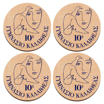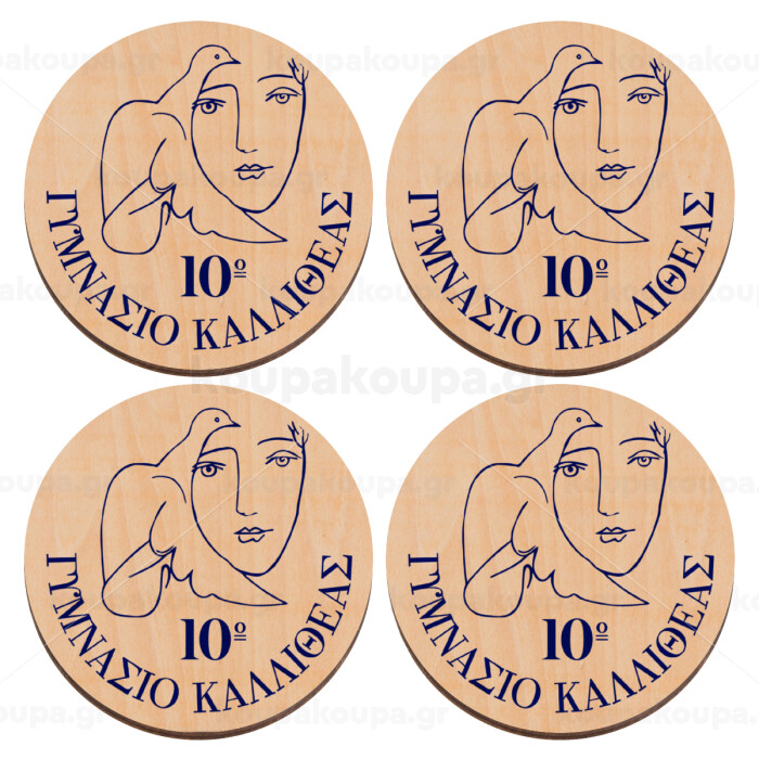 Έμβλημα Σχολικό, ΣΕΤ x4 Σουβέρ ξύλινα στρογγυλά plywood (9cm)