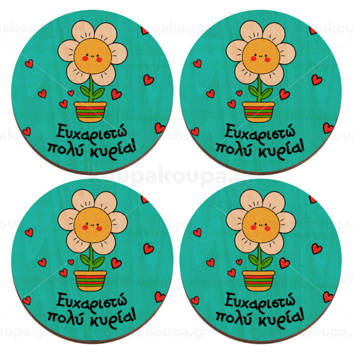 Ευχαριστώ πολύ κυρία!!!, ΣΕΤ x4 Σουβέρ ξύλινα στρογγυλά plywood (9cm)