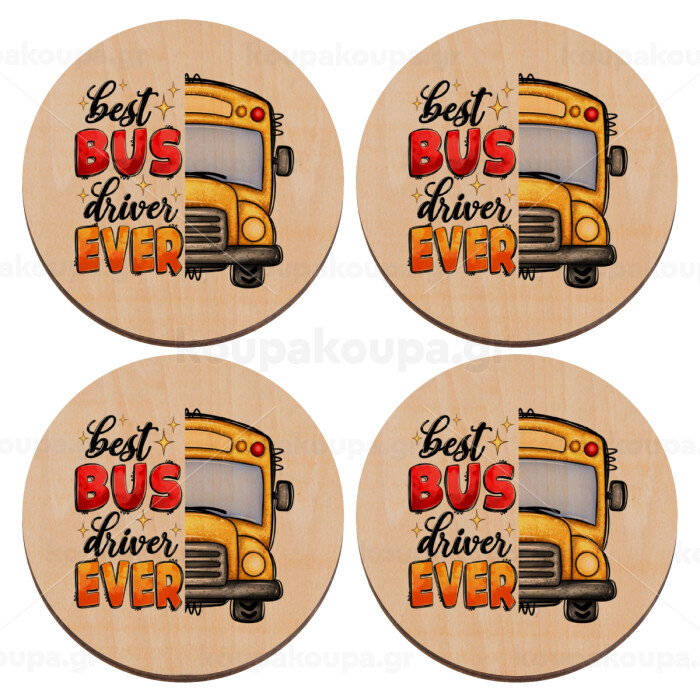 Best bus driver ever!, ΣΕΤ x4 Σουβέρ ξύλινα στρογγυλά plywood (9cm)