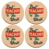 Best teacher in the World!, ΣΕΤ x4 Σουβέρ ξύλινα στρογγυλά plywood (9cm)