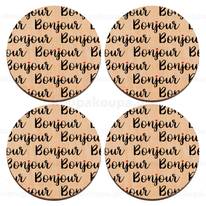 Bonjour, ΣΕΤ x4 Σουβέρ ξύλινα στρογγυλά plywood (9cm)