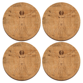 Leonardo da vinci Vitruvian Man, ΣΕΤ x4 Σουβέρ ξύλινα στρογγυλά plywood (9cm)