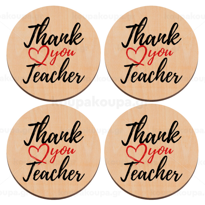 Thank you teacher, ΣΕΤ x4 Σουβέρ ξύλινα στρογγυλά plywood (9cm)
