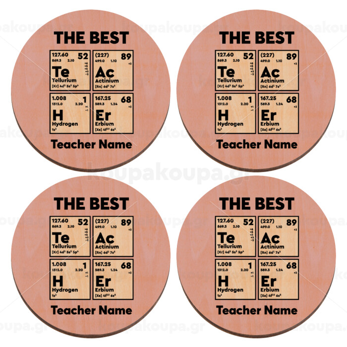 THE BEST Teacher chemical symbols, ΣΕΤ x4 Σουβέρ ξύλινα στρογγυλά plywood (9cm)