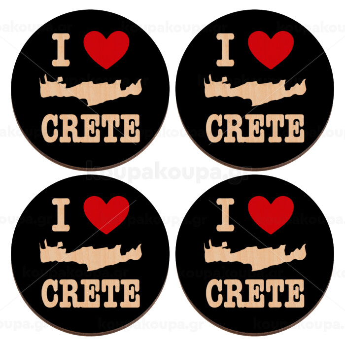 I Love Crete, ΣΕΤ x4 Σουβέρ ξύλινα στρογγυλά plywood (9cm)