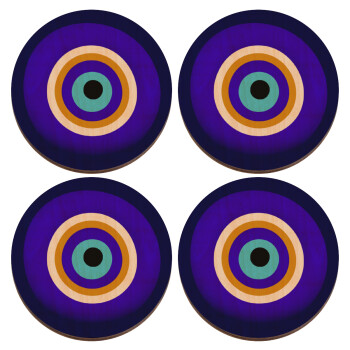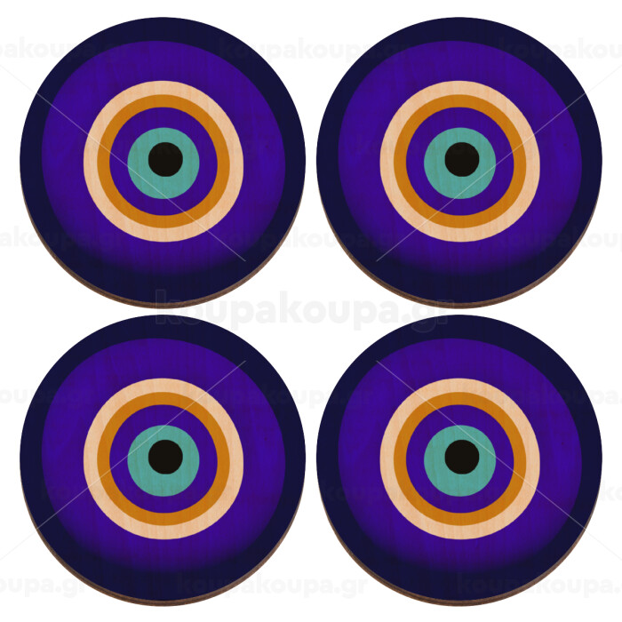 Το μάτι, ΣΕΤ x4 Σουβέρ ξύλινα στρογγυλά plywood (9cm)