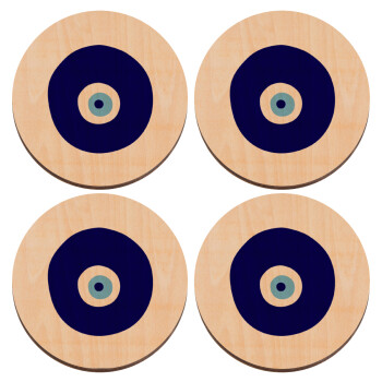 Χάντρα γαλαζιά, ΣΕΤ x4 Σουβέρ ξύλινα στρογγυλά plywood (9cm)
