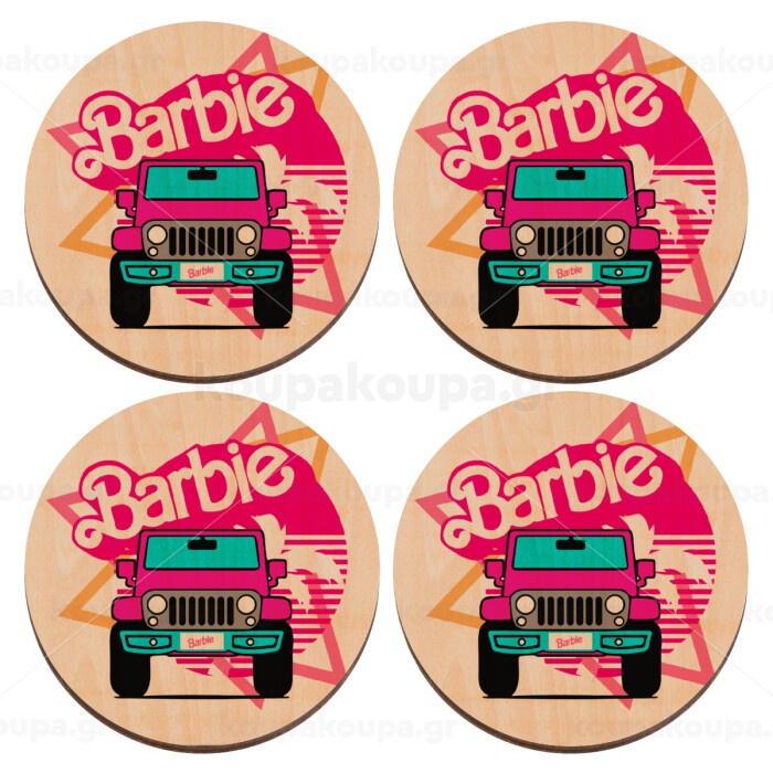 Barbie car, ΣΕΤ x4 Σουβέρ ξύλινα στρογγυλά plywood (9cm)