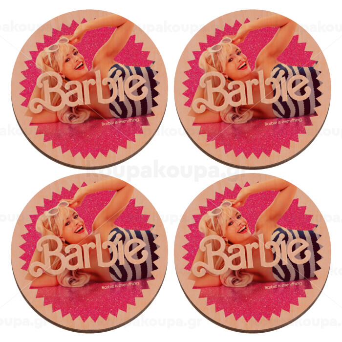 Barbie is everything, ΣΕΤ x4 Σουβέρ ξύλινα στρογγυλά plywood (9cm)