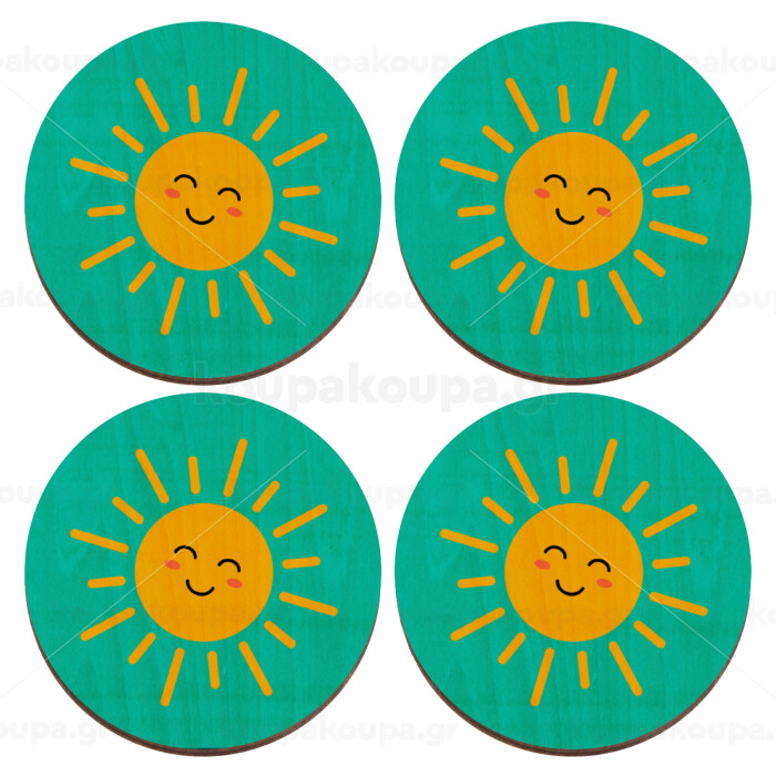 Happy sun, ΣΕΤ x4 Σουβέρ ξύλινα στρογγυλά plywood (9cm)