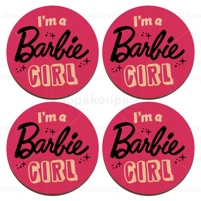 I'm Barbie girl, ΣΕΤ x4 Σουβέρ ξύλινα στρογγυλά plywood (9cm)
