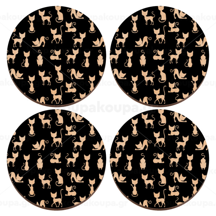 Γατούλες κυρίες, ΣΕΤ x4 Σουβέρ ξύλινα στρογγυλά plywood (9cm)