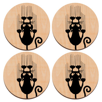 Cat scratching, ΣΕΤ x4 Σουβέρ ξύλινα στρογγυλά plywood (9cm)