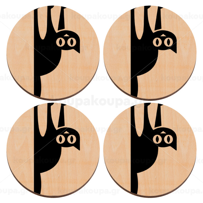 Cat upside down, ΣΕΤ x4 Σουβέρ ξύλινα στρογγυλά plywood (9cm)