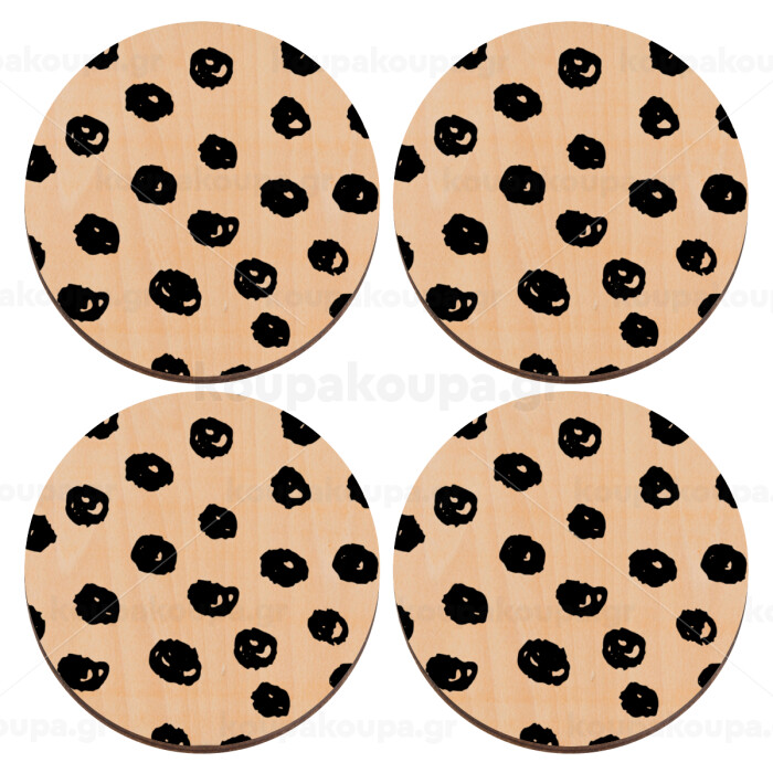 Doodle Dots, ΣΕΤ x4 Σουβέρ ξύλινα στρογγυλά plywood (9cm)