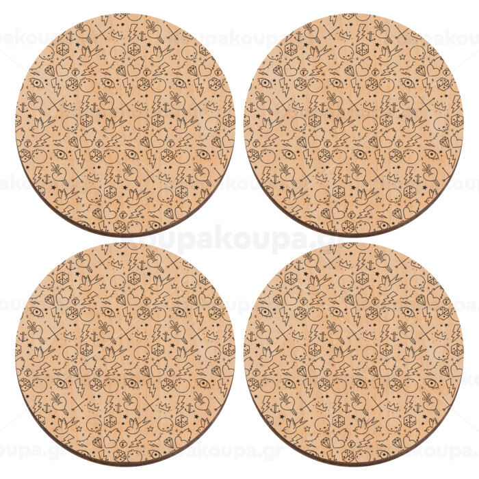 Σκελετοί lines, ΣΕΤ x4 Σουβέρ ξύλινα στρογγυλά plywood (9cm)