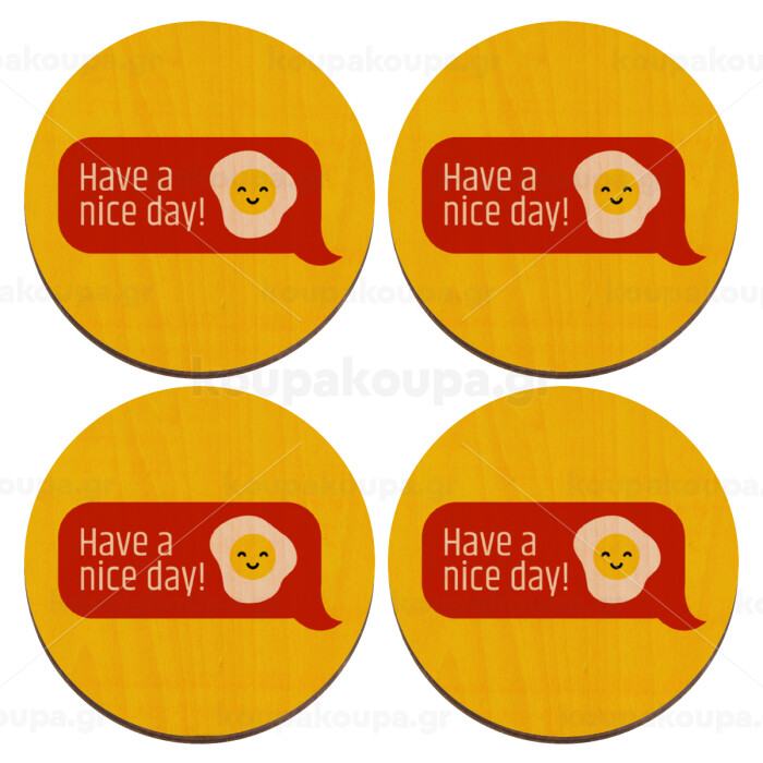 Have a nice day Emoji, ΣΕΤ x4 Σουβέρ ξύλινα στρογγυλά plywood (9cm)