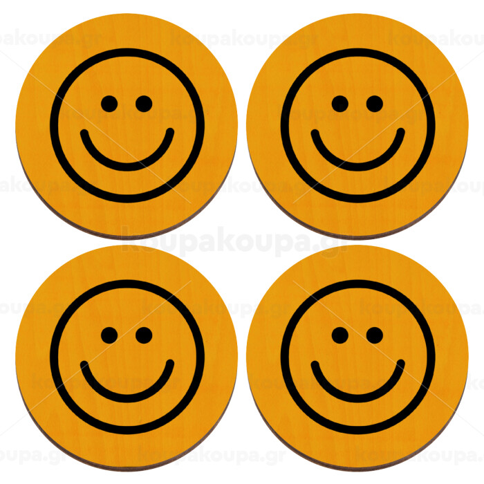 Smile classic, ΣΕΤ x4 Σουβέρ ξύλινα στρογγυλά plywood (9cm)
