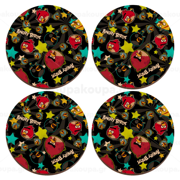 Τα πουλάκια angry birds μαύρο, ΣΕΤ x4 Σουβέρ ξύλινα στρογγυλά plywood (9cm)