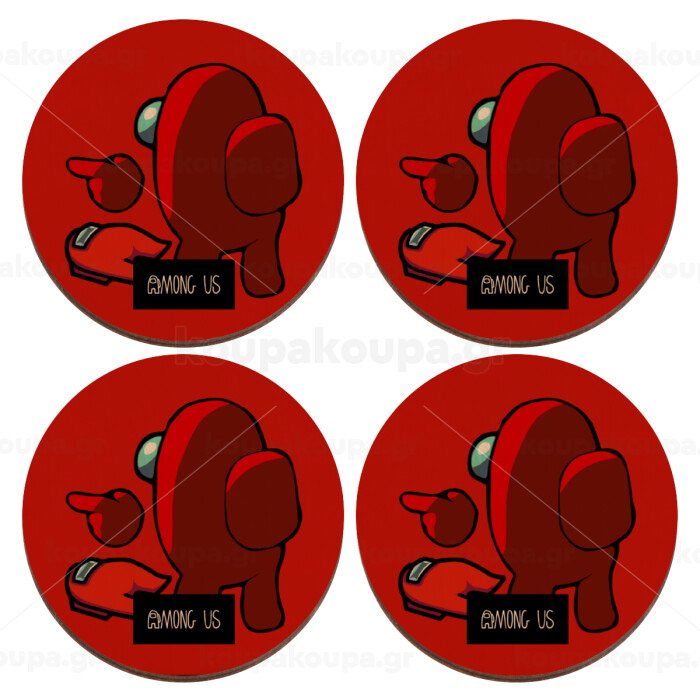 Among US i am impostor..., ΣΕΤ x4 Σουβέρ ξύλινα στρογγυλά plywood (9cm)