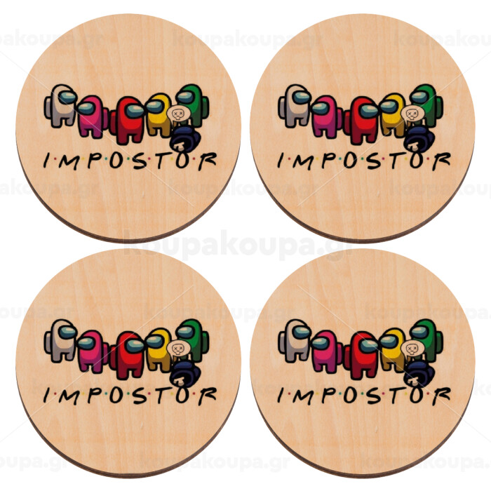 Among US impostor, ΣΕΤ x4 Σουβέρ ξύλινα στρογγυλά plywood (9cm)