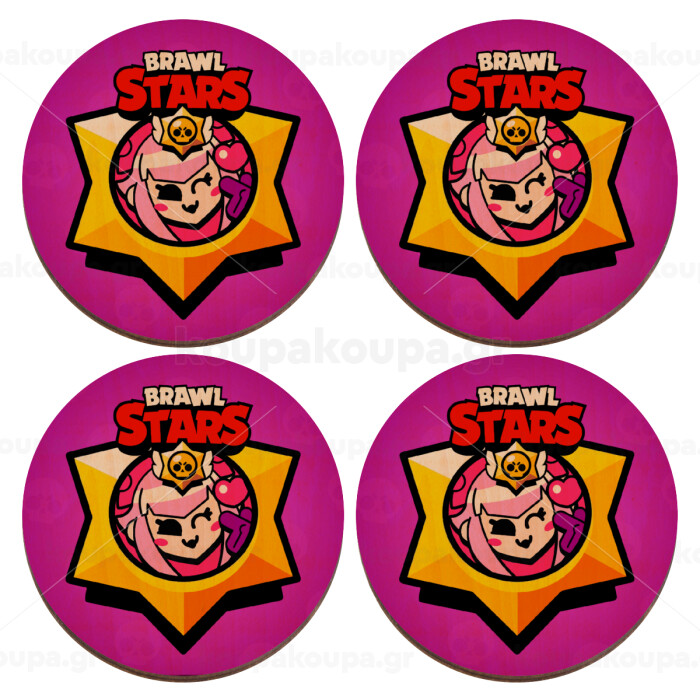 Brawl Stars Melodie, ΣΕΤ x4 Σουβέρ ξύλινα στρογγυλά plywood (9cm)