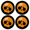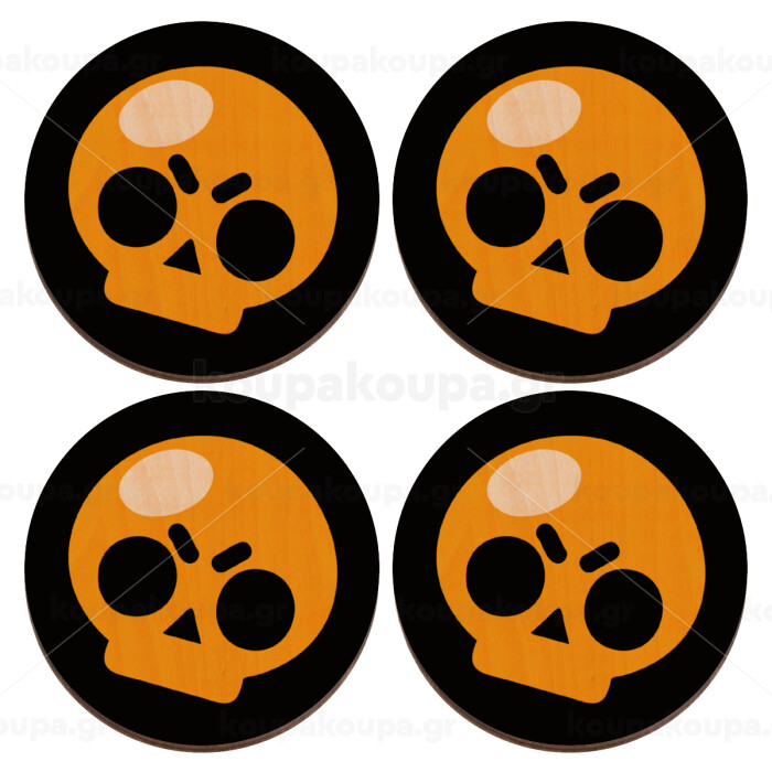 Brawl Stars Skull, ΣΕΤ x4 Σουβέρ ξύλινα στρογγυλά plywood (9cm)