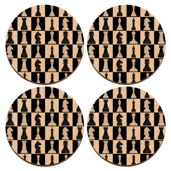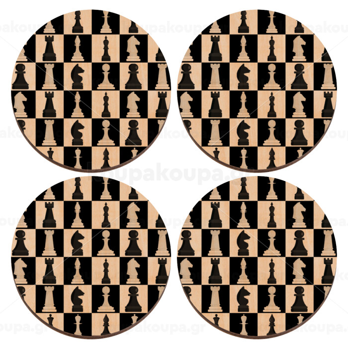 Chess set, ΣΕΤ x4 Σουβέρ ξύλινα στρογγυλά plywood (9cm)