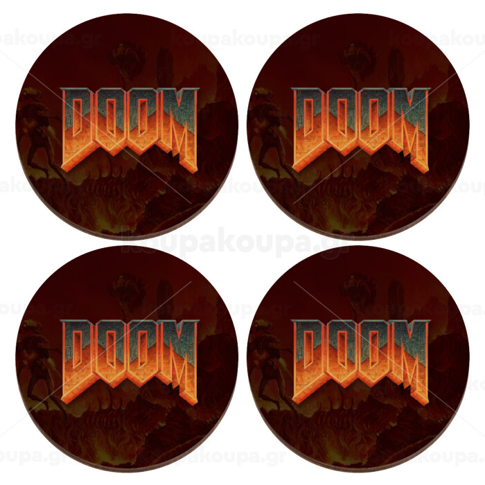 DOOM, ΣΕΤ x4 Σουβέρ ξύλινα στρογγυλά plywood (9cm)
