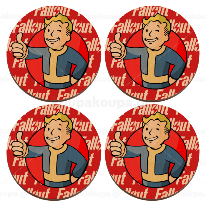 Fallout Vault Boy, ΣΕΤ x4 Σουβέρ ξύλινα στρογγυλά plywood (9cm)