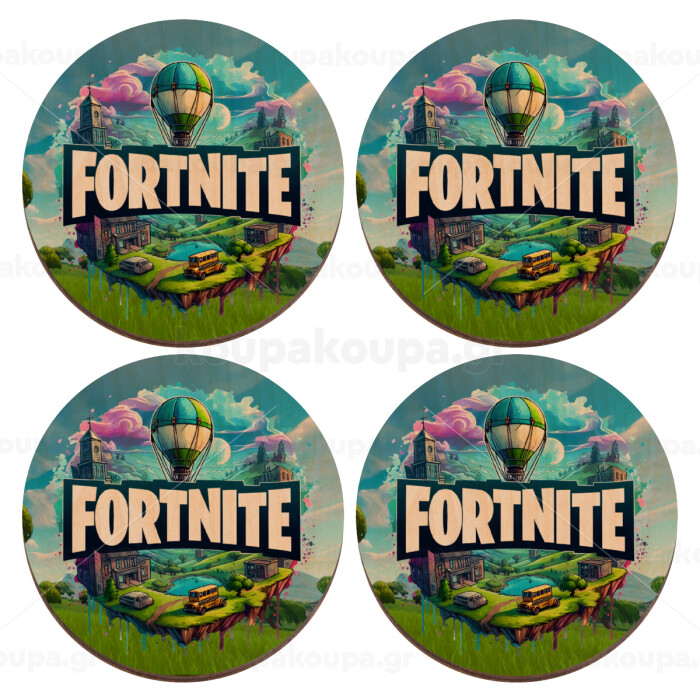 Fortnite land, ΣΕΤ x4 Σουβέρ ξύλινα στρογγυλά plywood (9cm)