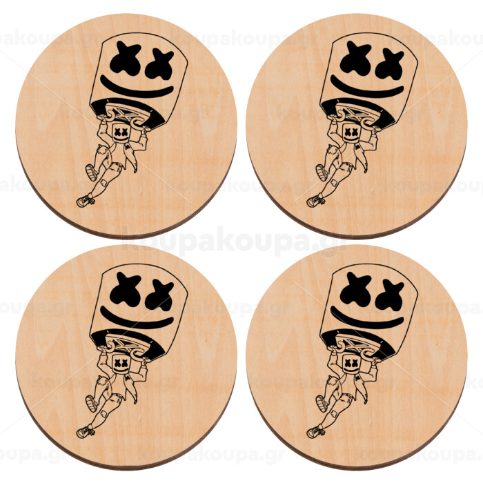 Fortnite Marshmello, ΣΕΤ x4 Σουβέρ ξύλινα στρογγυλά plywood (9cm)