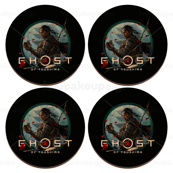 Ghost of Tsushima, ΣΕΤ x4 Σουβέρ ξύλινα στρογγυλά plywood (9cm)