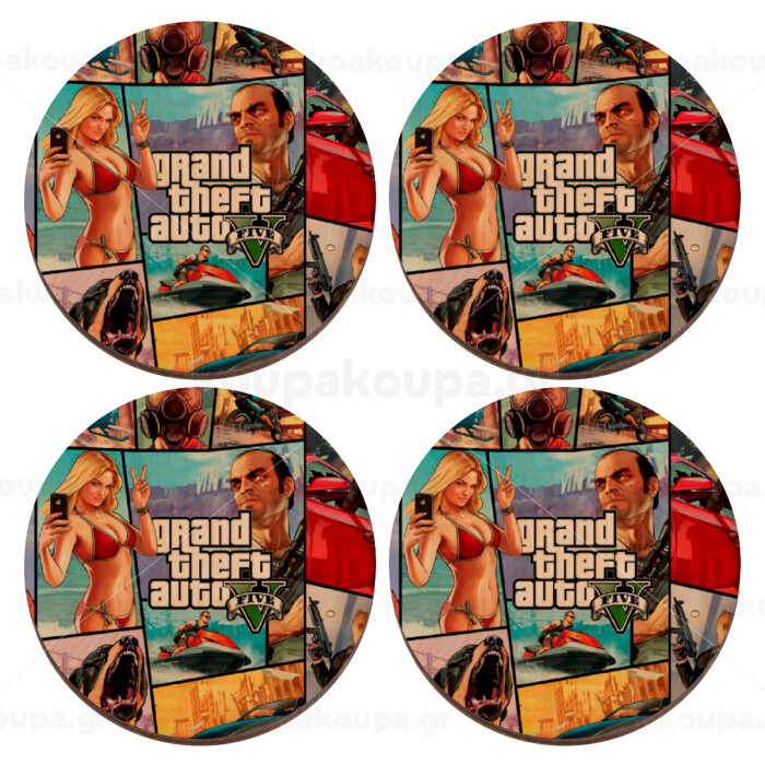 GTA V, ΣΕΤ x4 Σουβέρ ξύλινα στρογγυλά plywood (9cm)