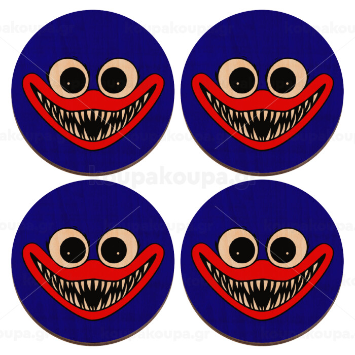 Huggy wuggy, ΣΕΤ x4 Σουβέρ ξύλινα στρογγυλά plywood (9cm)