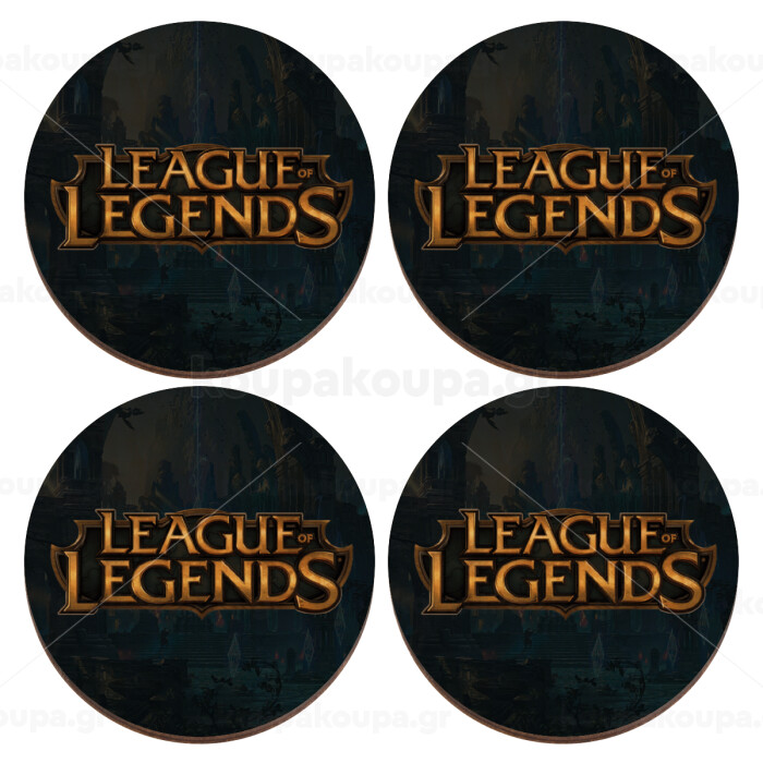 League of Legends LoL, ΣΕΤ x4 Σουβέρ ξύλινα στρογγυλά plywood (9cm)