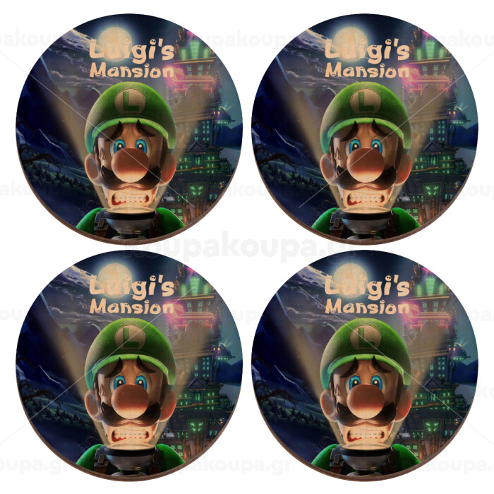 Luigi's Mansion, ΣΕΤ x4 Σουβέρ ξύλινα στρογγυλά plywood (9cm)