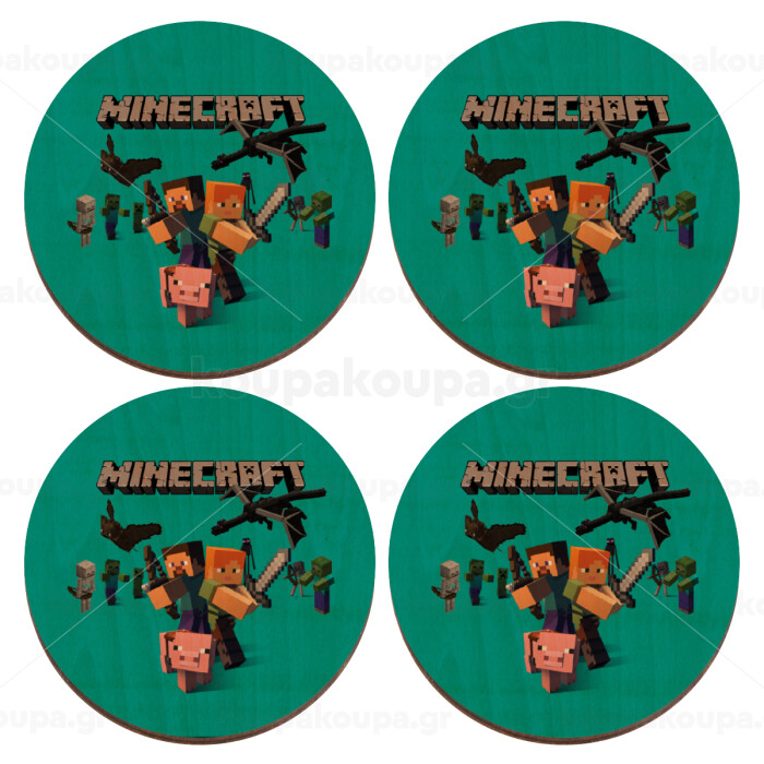Minecraft Alex, ΣΕΤ x4 Σουβέρ ξύλινα στρογγυλά plywood (9cm)