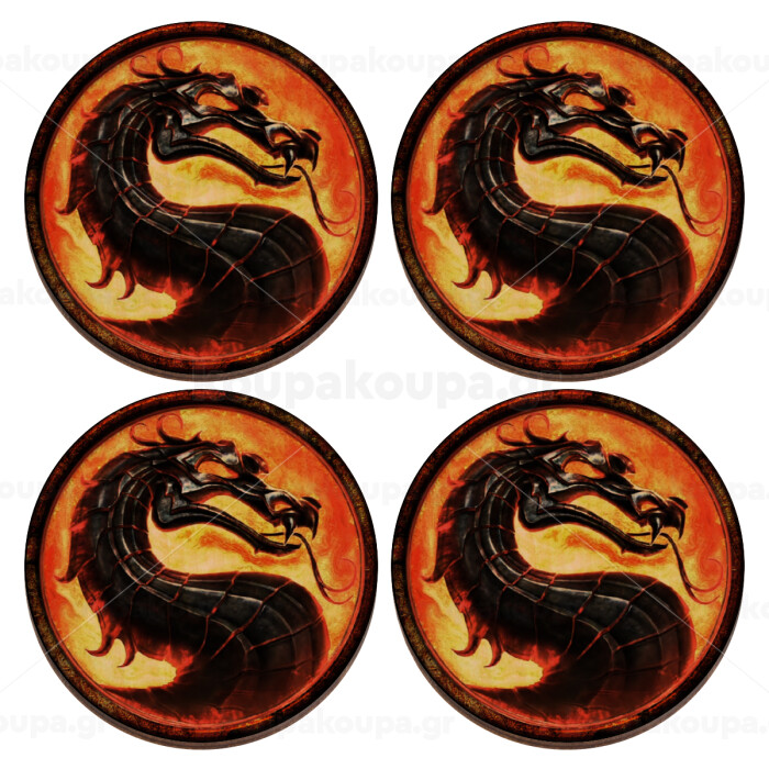 Mortal Kombat, ΣΕΤ x4 Σουβέρ ξύλινα στρογγυλά plywood (9cm)
