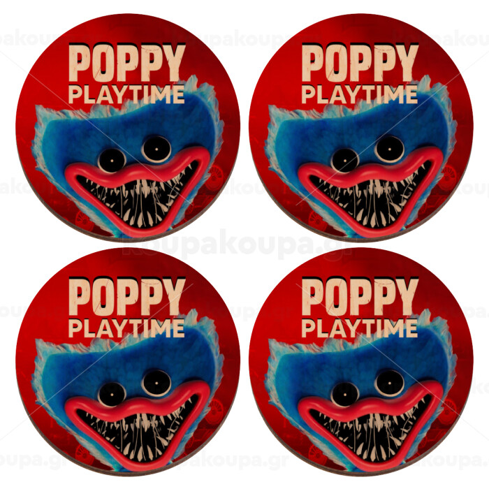 Poppy Playtime Huggy wuggy, ΣΕΤ x4 Σουβέρ ξύλινα στρογγυλά plywood (9cm)
