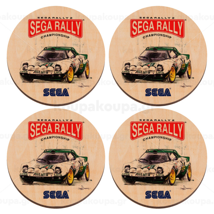 SEGA RALLY 2, ΣΕΤ x4 Σουβέρ ξύλινα στρογγυλά plywood (9cm)