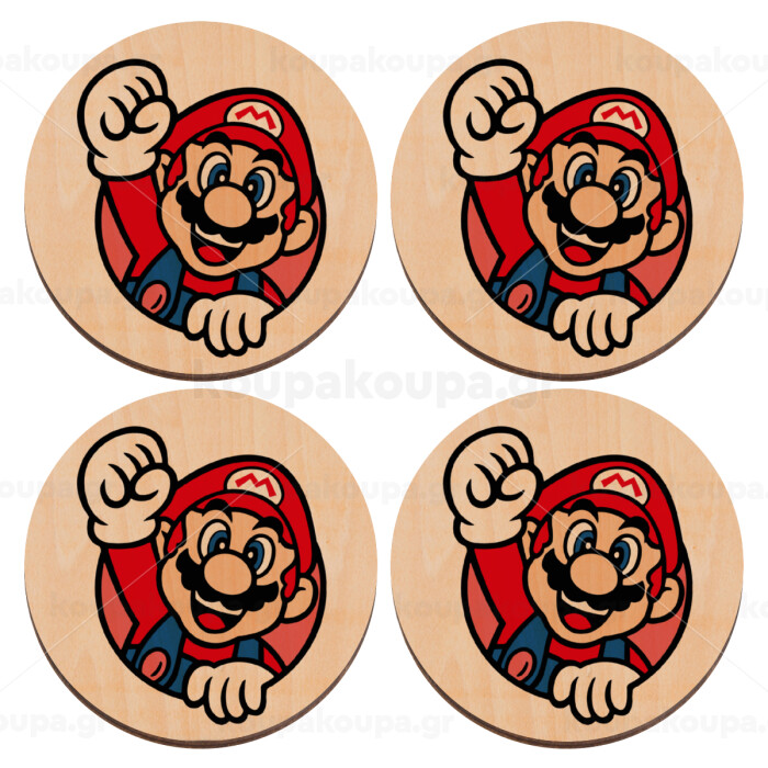 Super mario win, ΣΕΤ x4 Σουβέρ ξύλινα στρογγυλά plywood (9cm)