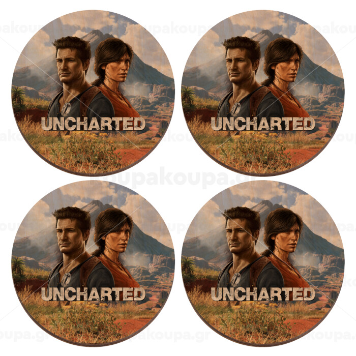 Uncharted, ΣΕΤ x4 Σουβέρ ξύλινα στρογγυλά plywood (9cm)