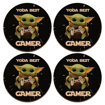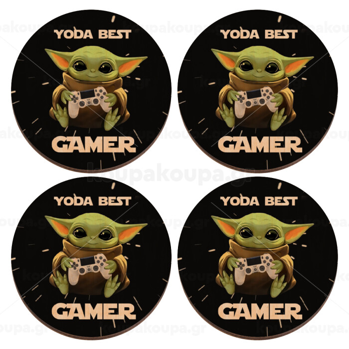 Yoda Best Gamer, ΣΕΤ x4 Σουβέρ ξύλινα στρογγυλά plywood (9cm)
