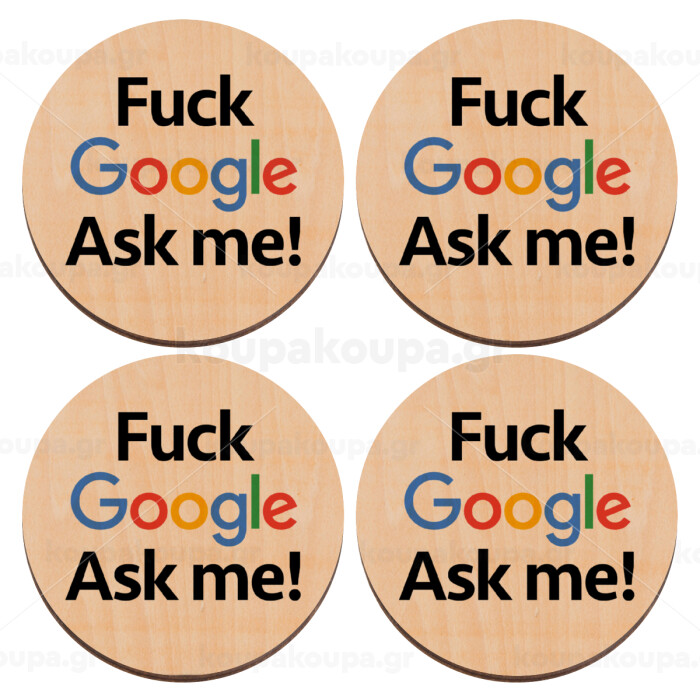 Fuck Google, Ask me!, ΣΕΤ x4 Σουβέρ ξύλινα στρογγυλά plywood (9cm)