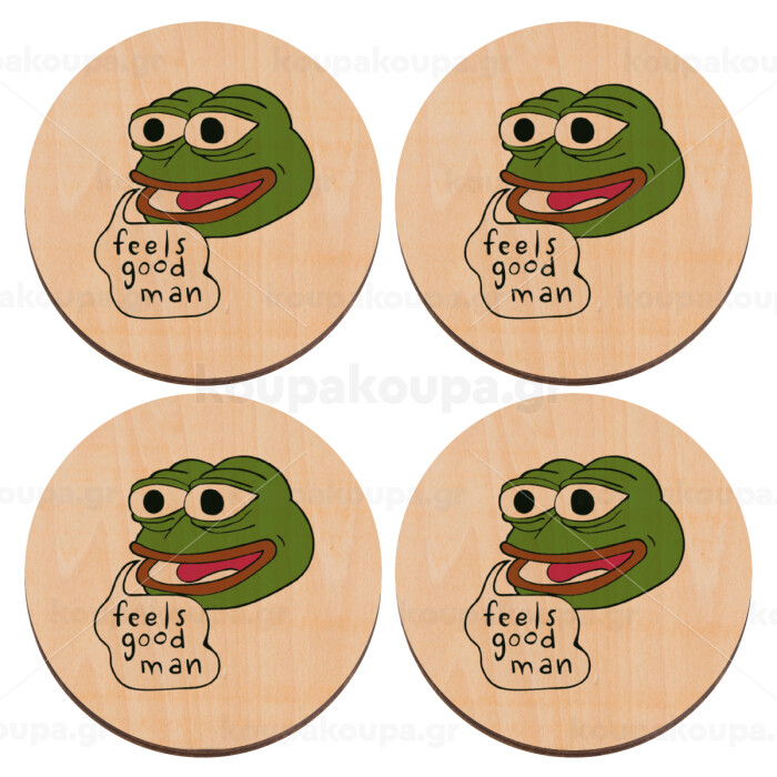 Pepe the frog, ΣΕΤ x4 Σουβέρ ξύλινα στρογγυλά plywood (9cm)
