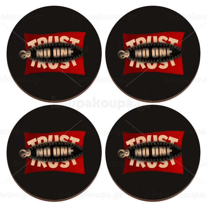 Trust no one... (zipper), ΣΕΤ x4 Σουβέρ ξύλινα στρογγυλά plywood (9cm)