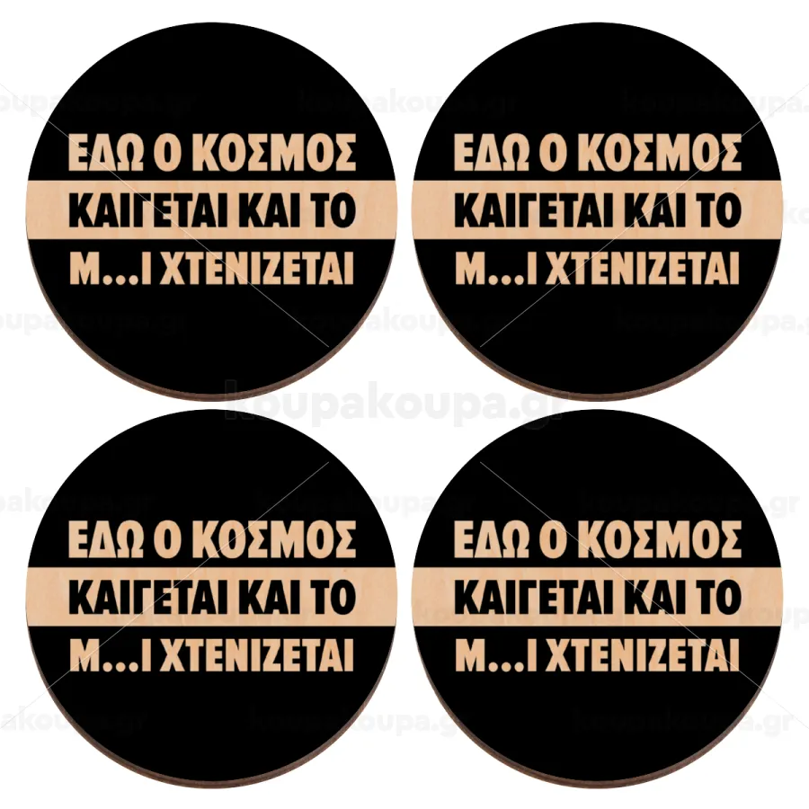 Εδώ ο κόσμος καίγεται και το Μ....Ι χτενίζεται, ΣΕΤ x4 Σουβέρ ξύλινα στρογγυλά plywood (9cm)