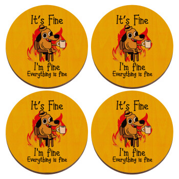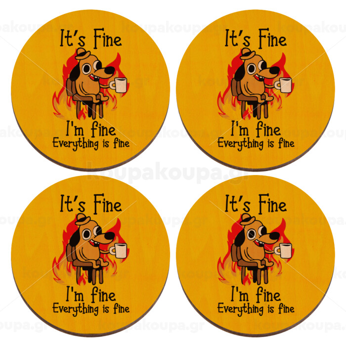 It's Fine I'm Fine Everything Is Fine, ΣΕΤ x4 Σουβέρ ξύλινα στρογγυλά plywood (9cm)