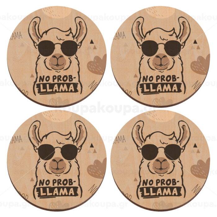 No Prob Llama, ΣΕΤ x4 Σουβέρ ξύλινα στρογγυλά plywood (9cm)